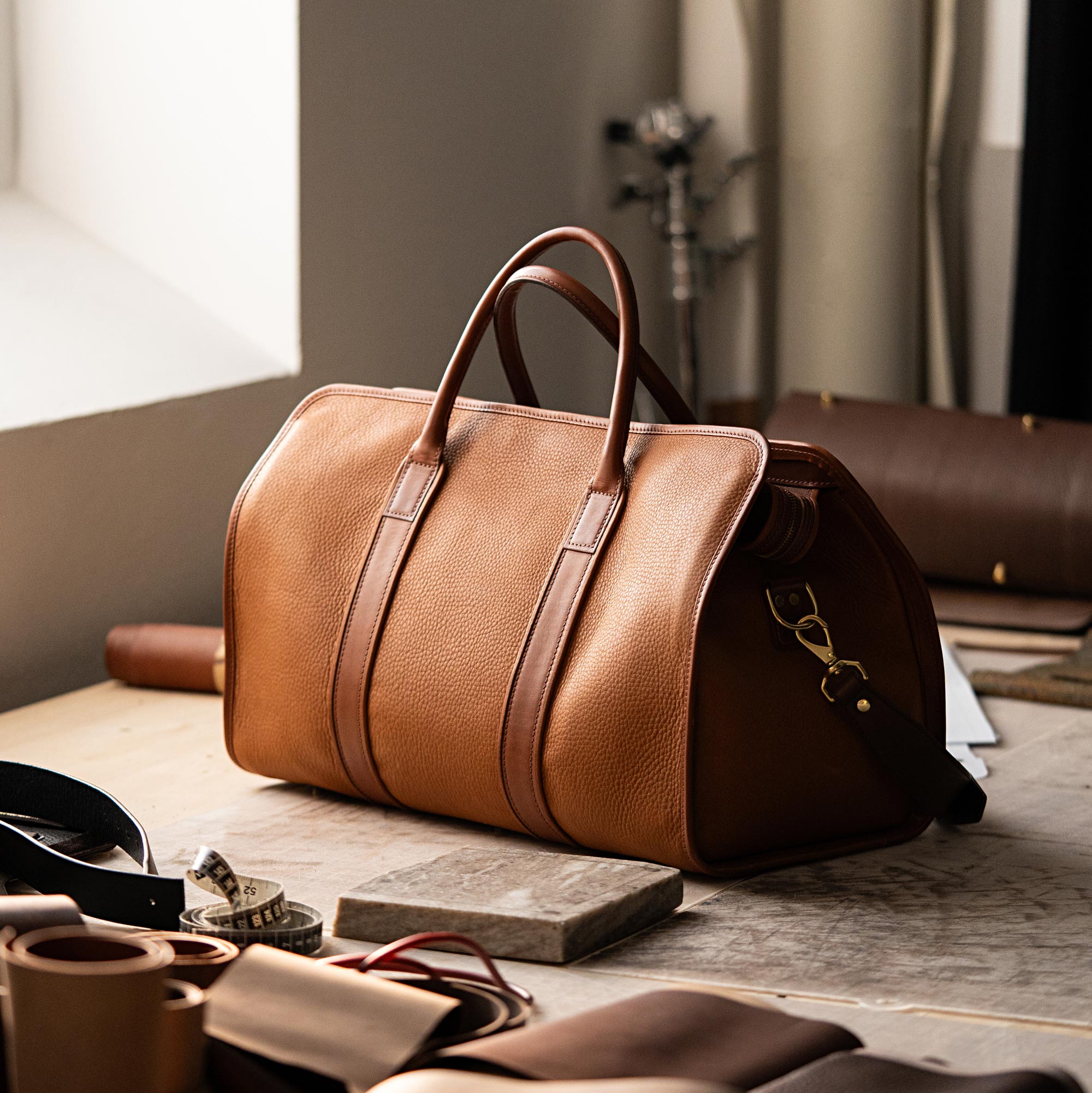 Fine Taurillon Leather with Vegetable-Tanned Leather Handles